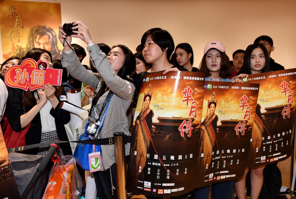 2016年4月7日,台湾粉丝在《芈月传》宣传现场助威。新华社记者 张国俊 摄