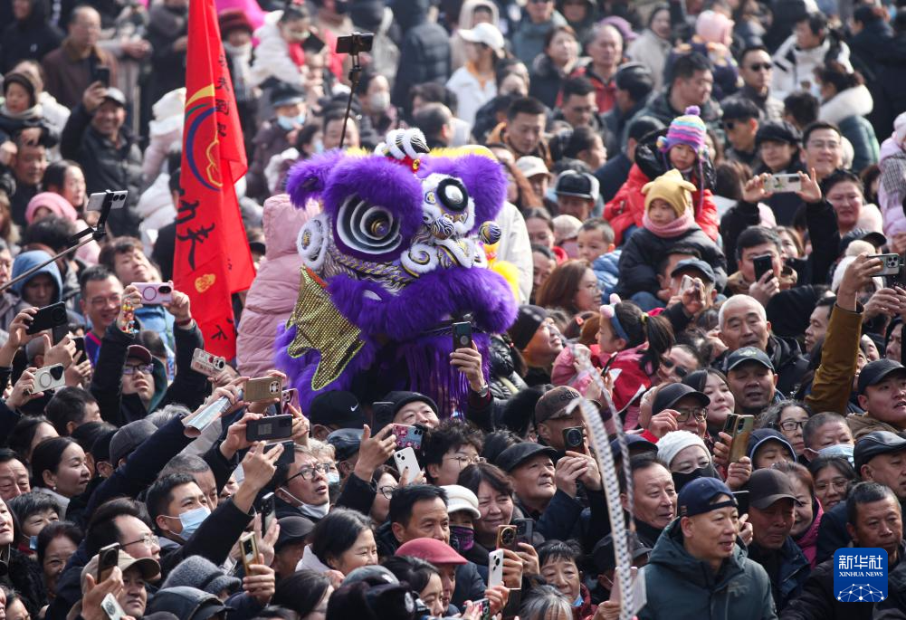 2月21日,观众在新疆乌鲁木齐市水磨沟区观看英歌舞表演。