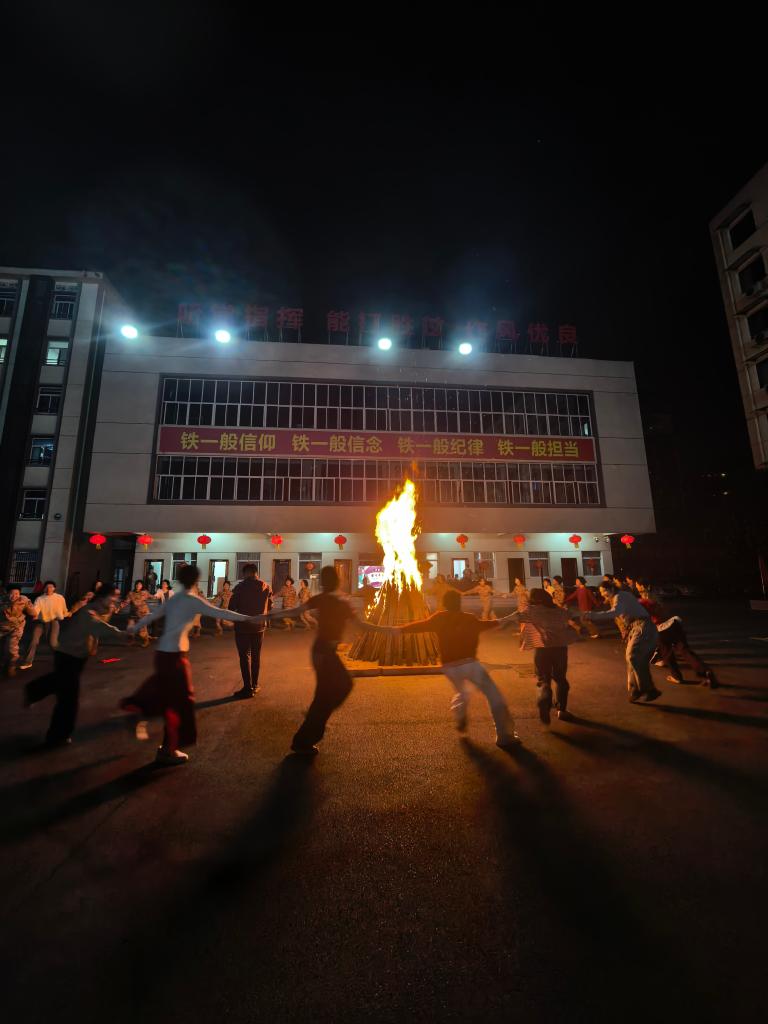 跳动的篝火驱散了夜的微凉,藏了一整年的牵挂与温暖,在军营里慢慢化开,成了这里最浓郁的年味儿。