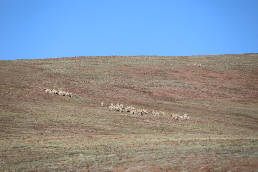 可可西里腹地卓乃湖附近的藏羚羊群。