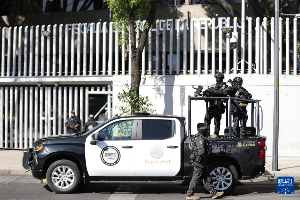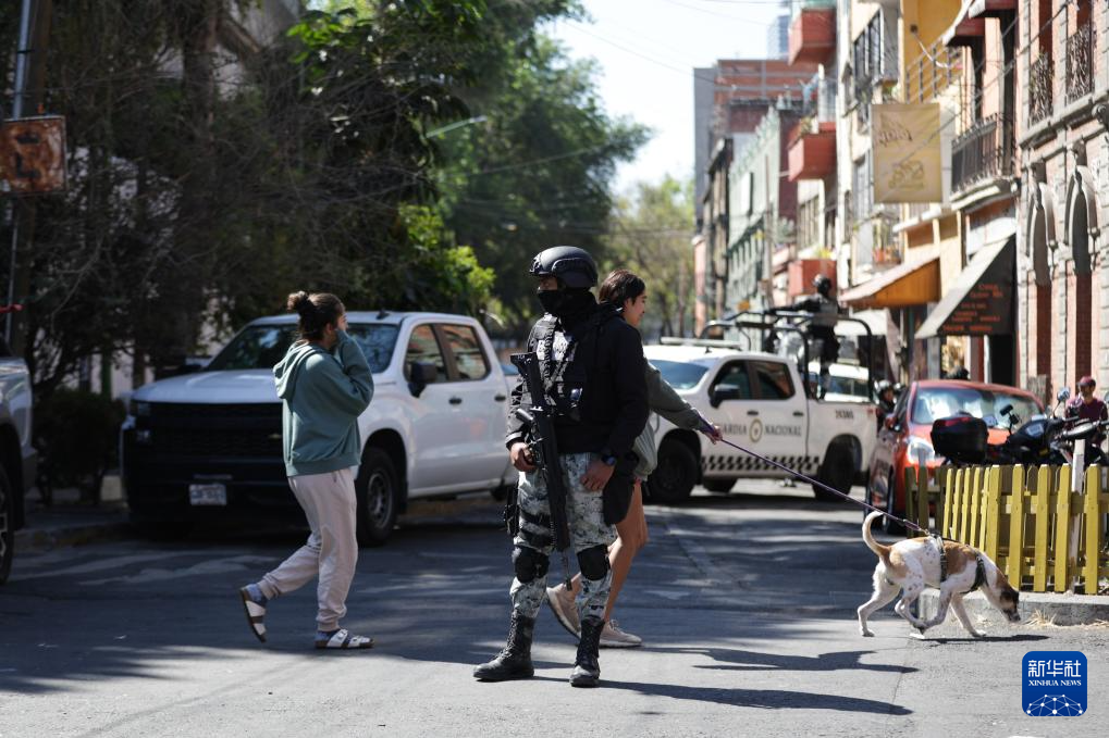 2月23日,在墨西哥首都墨西哥城,安全人员在街头执勤。新华社发(弗朗西斯科·卡涅多摄)