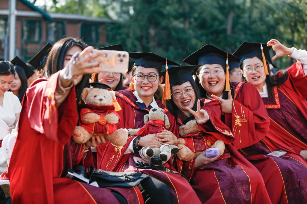 2025年6月23日,毕业生在中国人民大学毕业典礼上拍照留念。