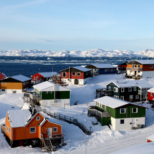 2月8日在格陵兰岛首府努克附近拍摄的村庄(李颖 摄)