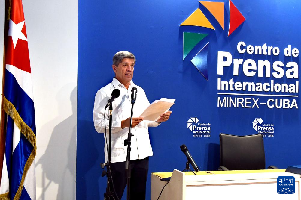 2月26日,在古巴首都哈瓦那,古巴外交部副部长德科西奥在记者会上通报有关情况。新华社发(华金·埃尔南德斯摄)