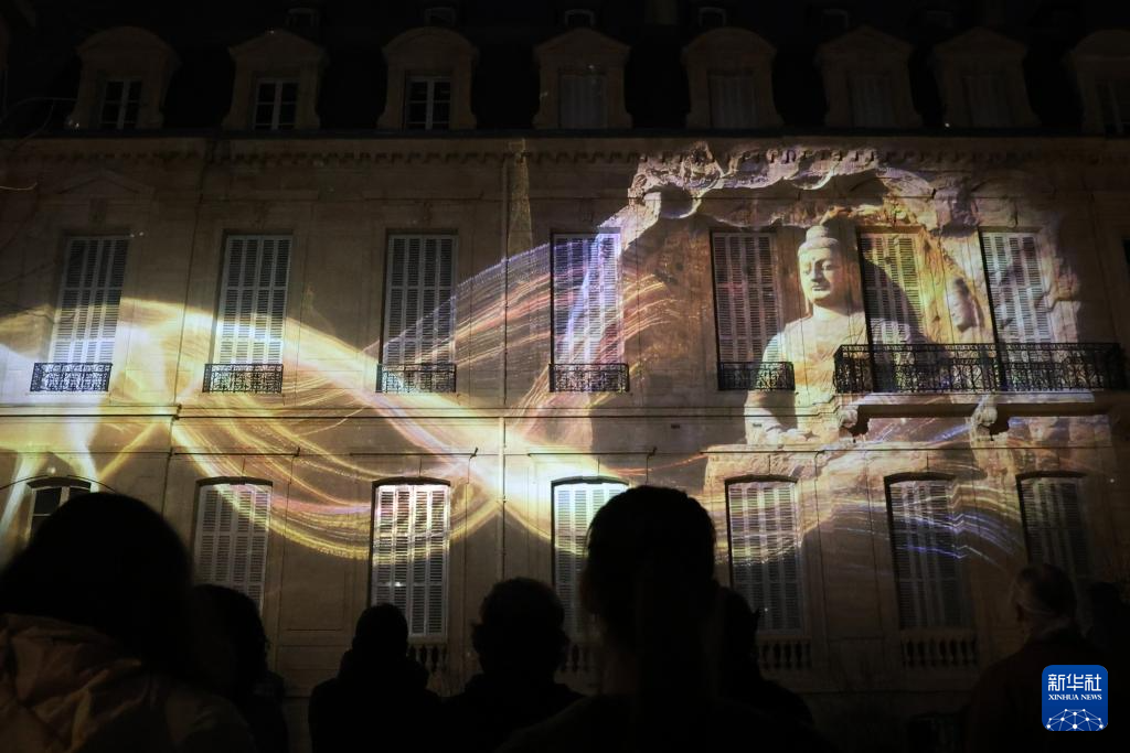在演出现场,记者看到不少当地观众驻足观看,有的还用手机记录光影变幻瞬间。观众米歇尔表示,灯光秀在法国不少古迹,尤其是大教堂中较为常见,但这是她首次观看以中国文化为主题的光雕秀。她认为,传统石窟意象与欧式建筑立面的结合“非常协调,也很有冲击力”。