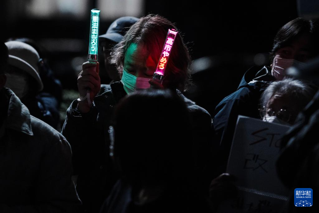 当晚的集会有近千人参加。抗议者手举写有“反对战争,维护宪法”“不要战争 不要高市”“不能容忍高市政治”等字样的牌子,高呼“反对修宪”“守护和平”等口号,对高市企图修宪表达不满。