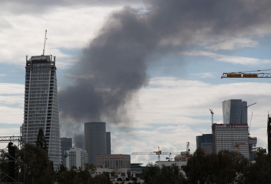 这是2月28日在以色列特拉维夫拍摄的浓烟。新华社记者陈君清摄