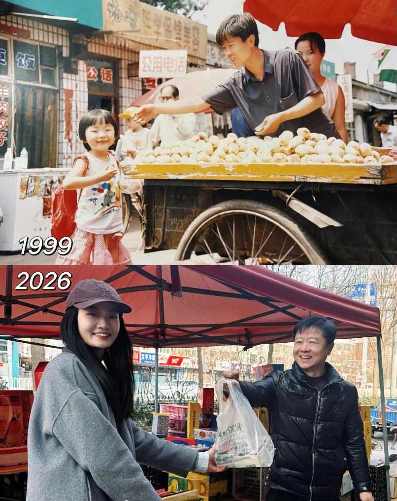 1999年的山西太原街头,一位父亲抓拍下女儿和水果摊叔叔的一张合影,当时这名女孩三岁。前段时间女孩30岁生日,她在网上发布了这张合影,没想到被太原的堂姐认出,当年的水果摊叔叔就在拍照地不远处开了一家水果店。今年春节,女孩从河南焦作来到山西太原,与照片中的叔叔重逢,再次拍下了一张照片。