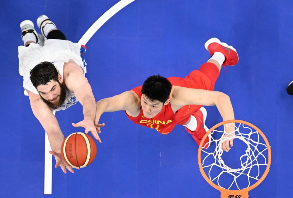 2月26日,中国队球员贺希宁(左)在比赛中上篮。新华社记者 贾浩成 摄