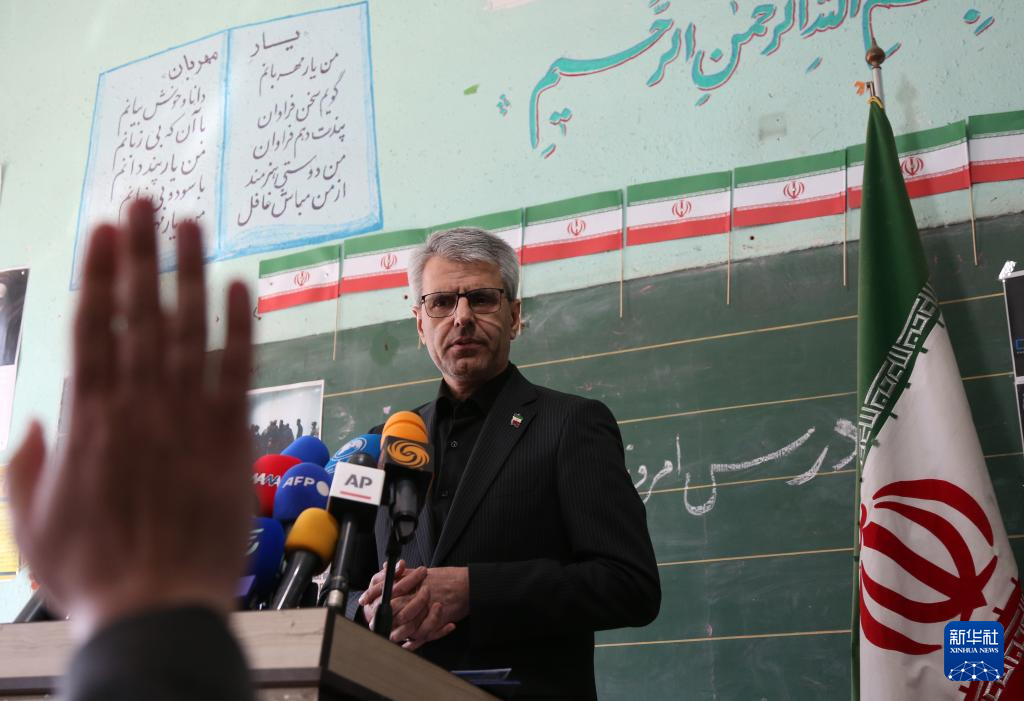 3月3日,伊朗外交部发言人巴加埃在德黑兰的沙希德·马哈拉提学校内举行新闻发布会,这座学校在美以军事打击中遭到破坏。 新华社记者 沙达提 摄