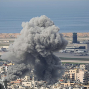 3月4日,黎巴嫩贝鲁特南郊的拉菲克·哈里里国际机场附近被以军导弹击中后升起浓烟。当日,贝鲁特南郊部分地区再遭以军轰炸。新华社发(比拉尔·贾维希摄)