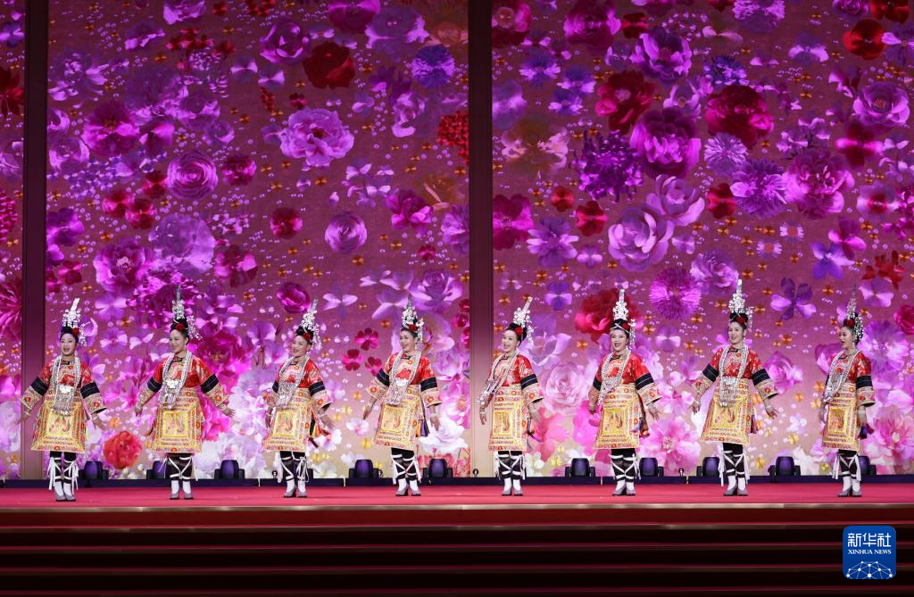 3月6日,演员们在纪念“三八”国际妇女节中外妇女招待会上表演侗族大歌。新华社记者 张玉薇 摄