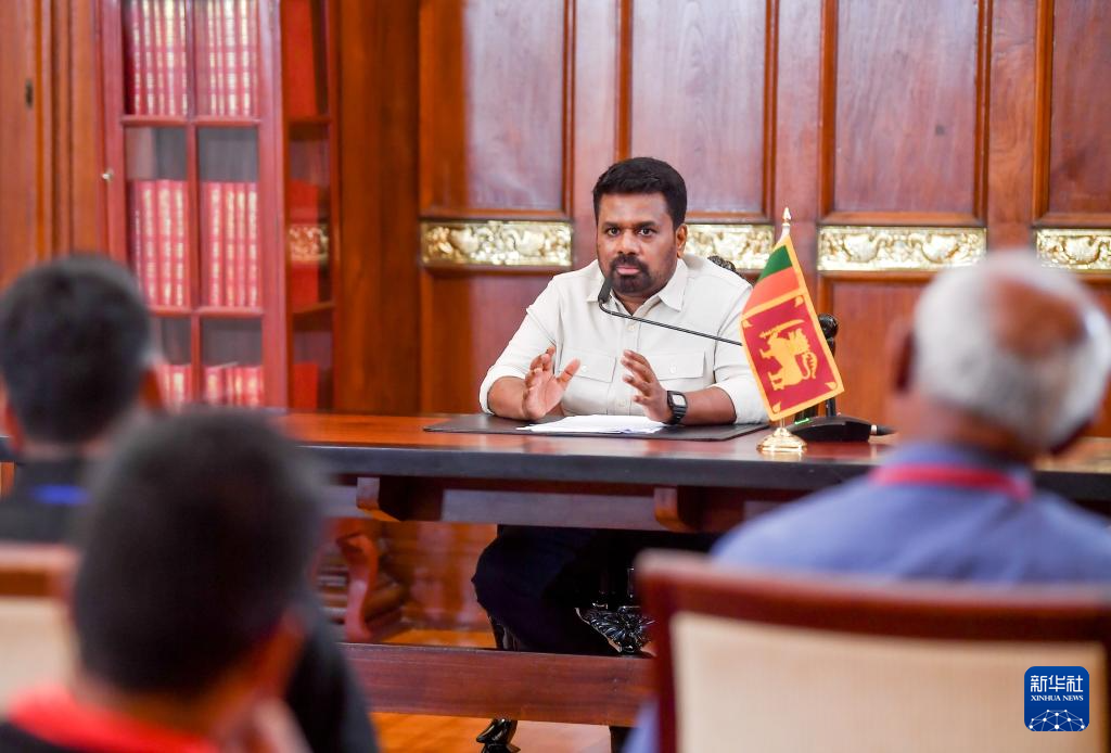 3月5日,在斯里兰卡科伦坡,斯里兰卡总统迪萨纳亚克在新闻发布会上发言。新华社发(斯里兰卡总统新闻办公室供图)