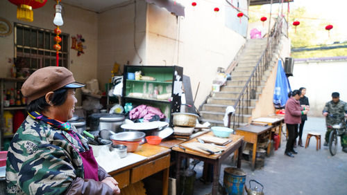 百姓在厨房内烧菜。本组图片均为新华社记者 胡晨欢摄