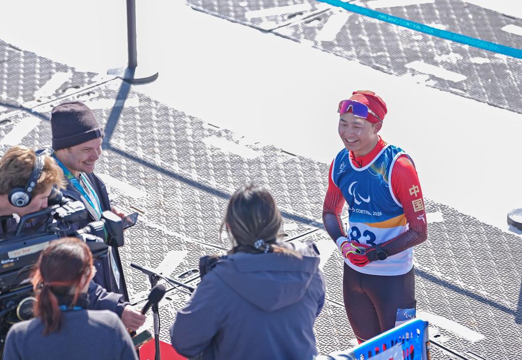 3月7日,中国选手蔡佳云(右一)在赛后接受采访。新华社记者 侯昭康 摄
