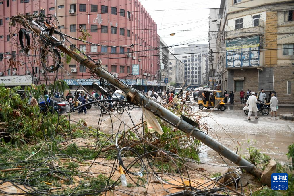 3月19日,在巴基斯坦南部城市卡拉奇,一根电线杆被风吹倒。新华社发