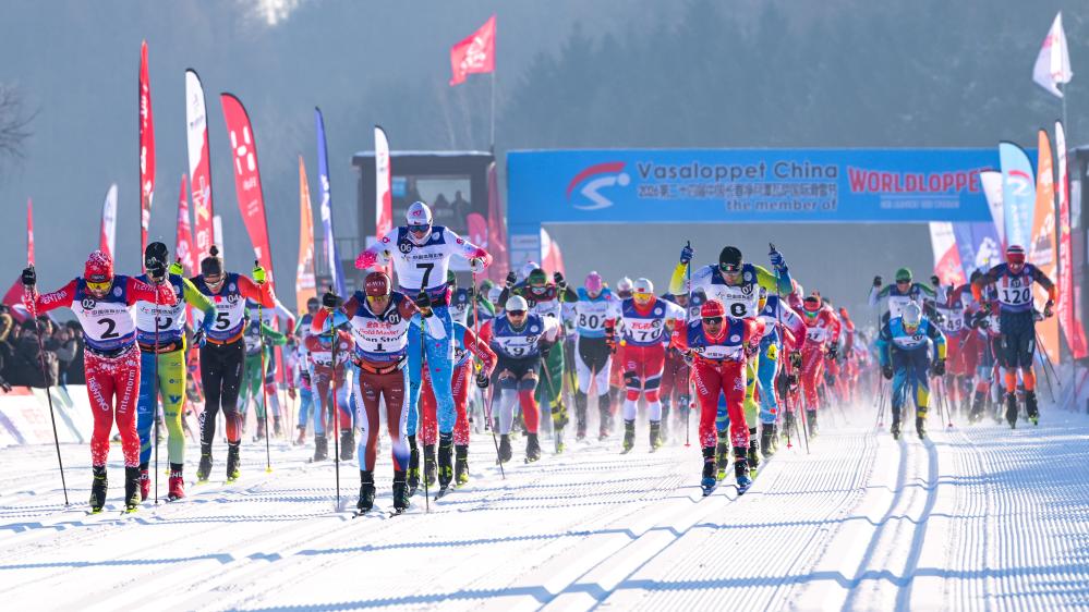 2026年1月4日,第24届中国长春净月潭瓦萨国际滑雪节在长春市净月潭国家森林公园启幕,共有来自33个国家和地区的2000余名运动员及爱好者参与其中。新华社记者 许畅 摄