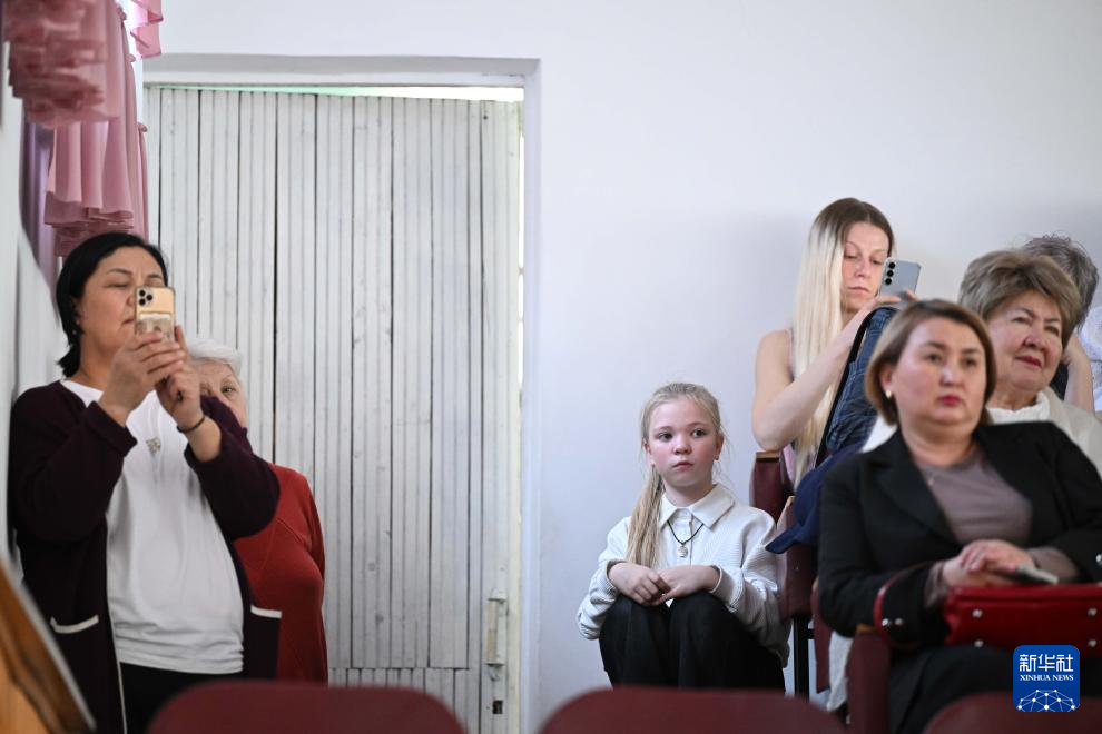 3月26日,在吉尔吉斯斯坦比什凯克,人们观看钢琴比赛。新华社记者 李任滋 摄