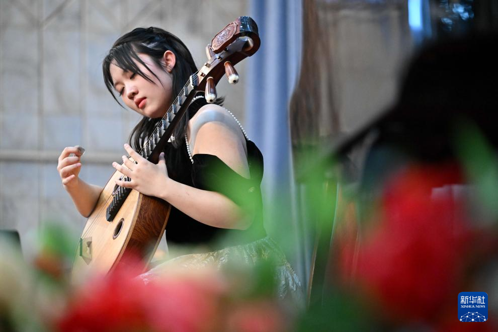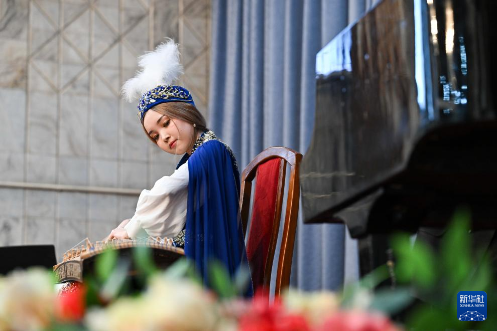 3月25日,在吉尔吉斯斯坦比什凯克,中国选手沈欣乐参加民族乐器比赛。新华社记者 李任滋 摄