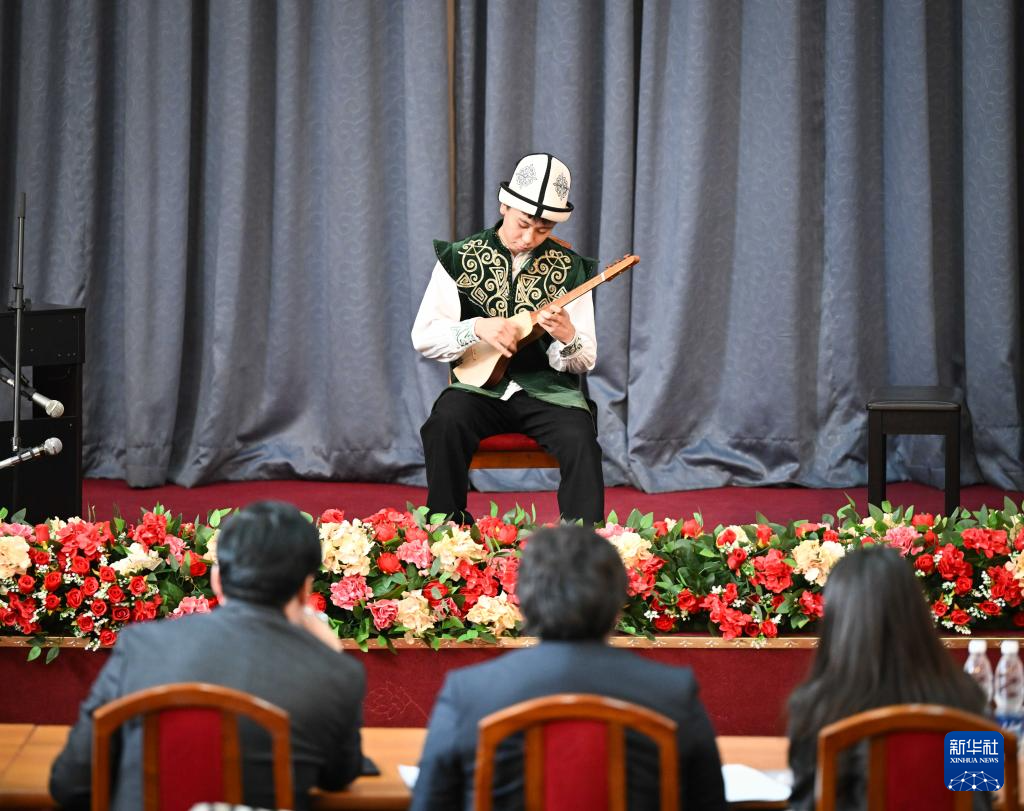 3月25日,在吉尔吉斯斯坦比什凯克,选手参加民族乐器比赛。新华社记者 李任滋 摄