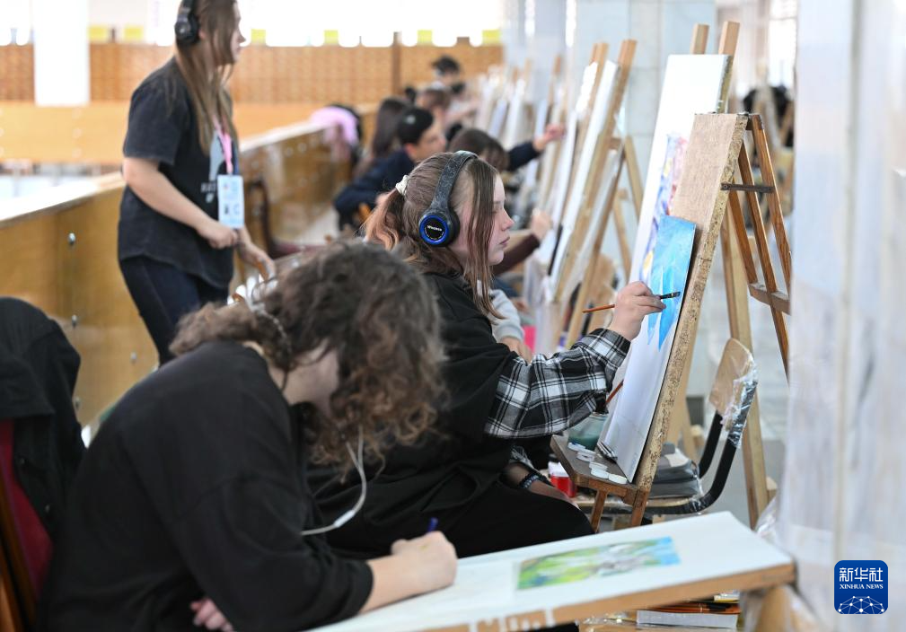 3月25日,在吉尔吉斯斯坦比什凯克,选手参加美术比赛。新华社记者 李任滋 摄