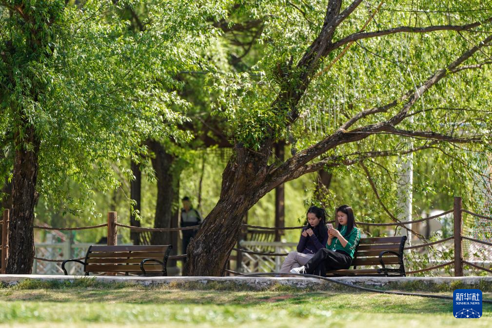 3月26日,人们在东村社区放松休闲。
