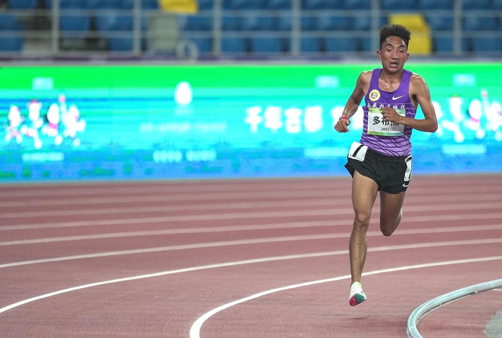 西藏队选手多布杰在第十四届全运会田径男子10000米决赛中夺冠。新华社记者 彭子洋 摄