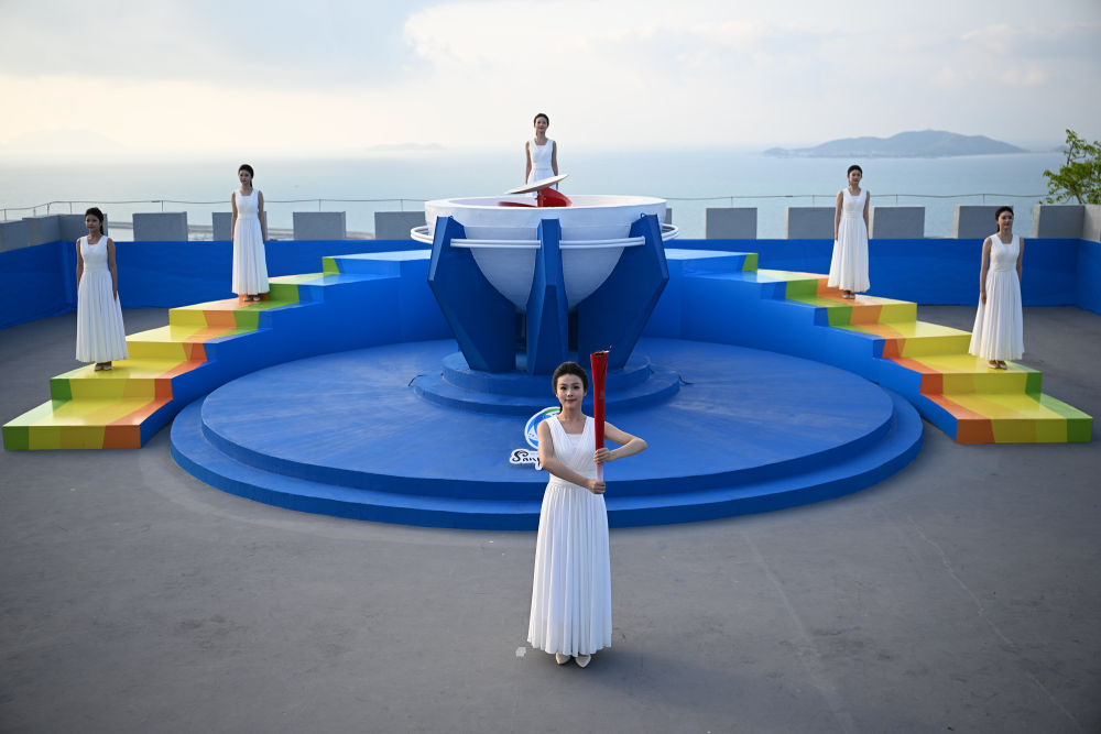 新华社快讯:第六届亚洲沙滩运动会火炬传递开始