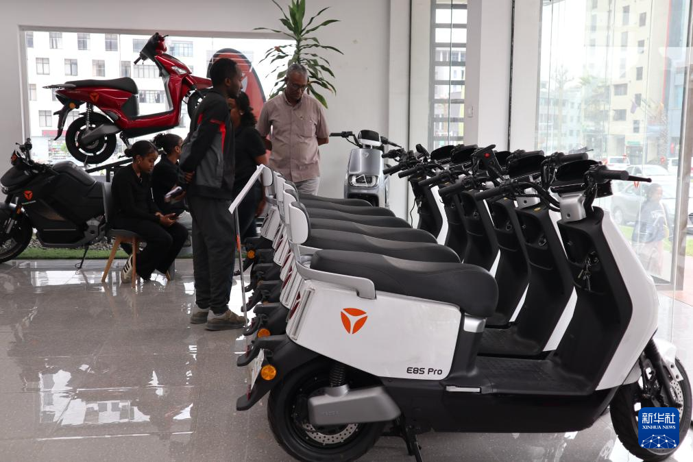 在埃塞首都亚的斯亚贝巴繁忙的博莱区,不少行人路过一家中国品牌电动自行车专卖店时停下脚步,向店内展品张望。走进门店,前来咨询的顾客络绎不绝,两名工作人员架起手机,正在短视频平台上直播,宣传介绍产品。