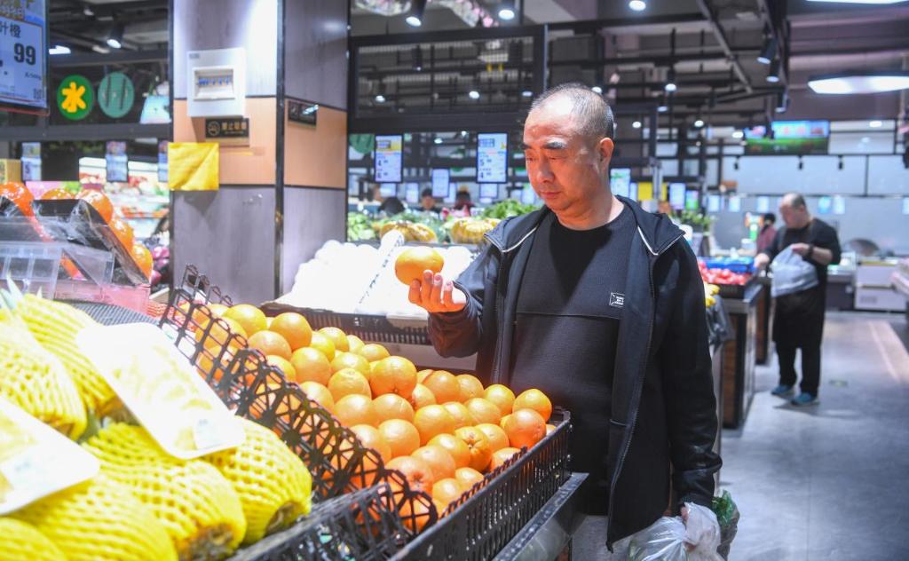 袁玉新在小区附近的超市购物。(受访者供图)