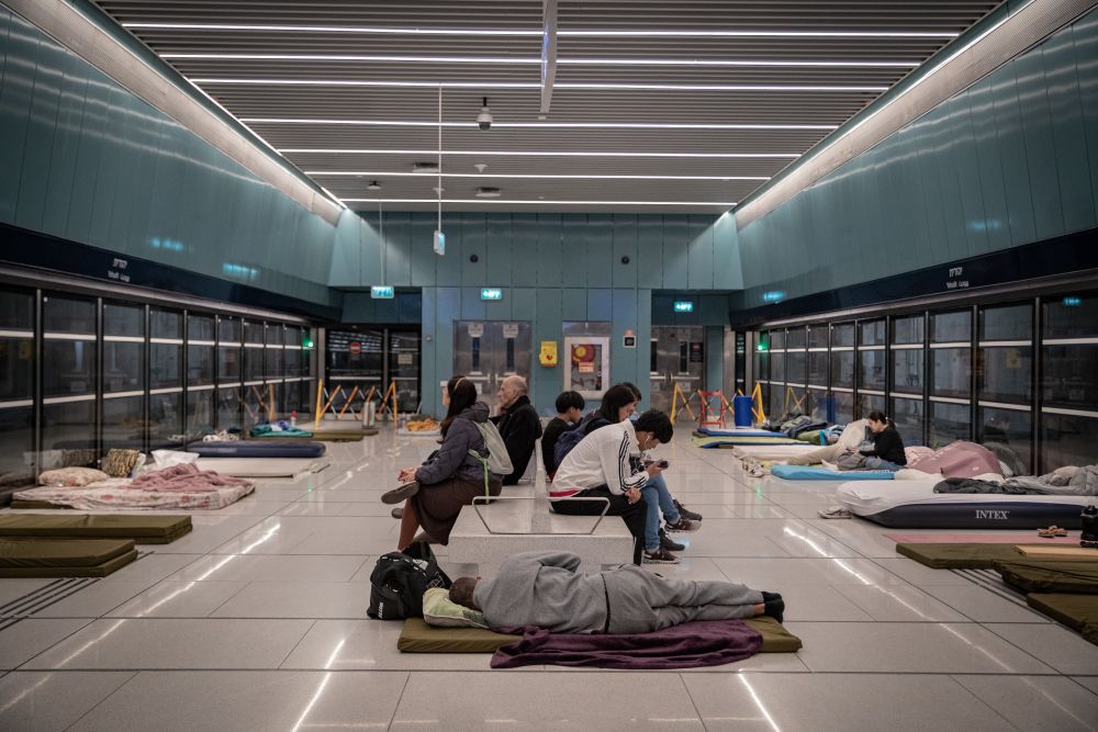 3月26日,在以色列特拉维夫,防空警报响起时,人们在一处具备民防功能的地铁站避难。(陈君清 摄)