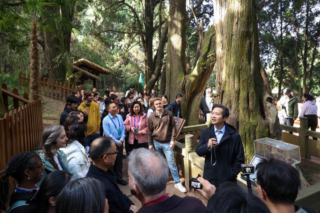 3月24日,中美嘉宾在翠云廊了解古柏。新华社发(陈居伟摄)