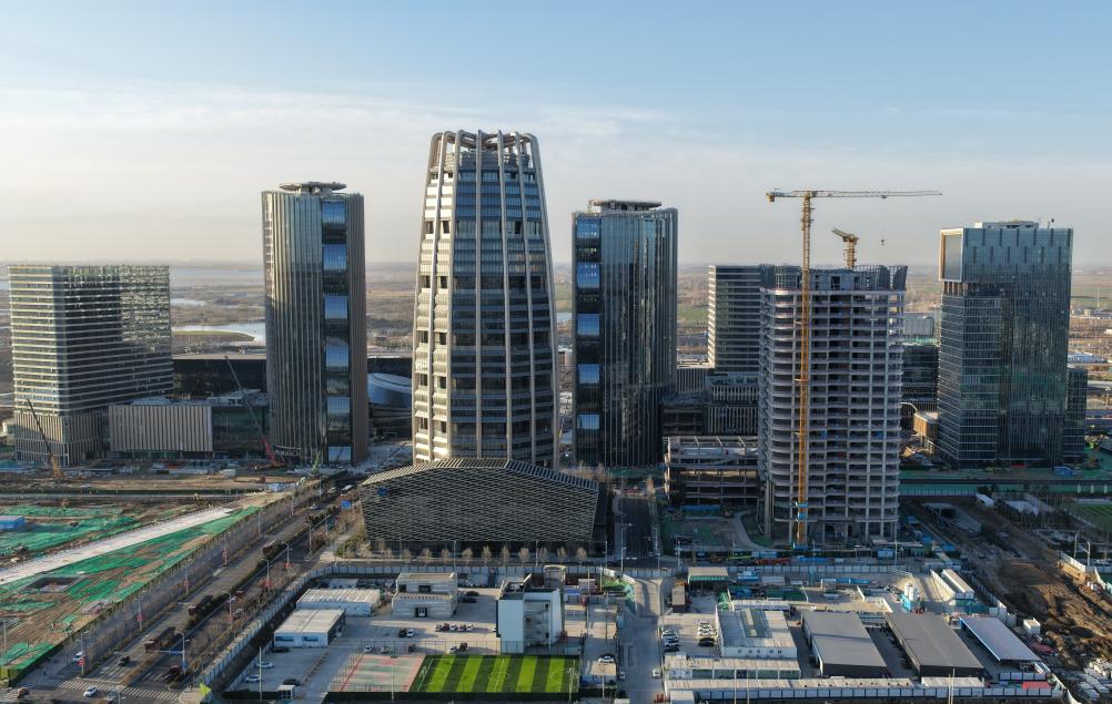 站在国贸中心楼顶环顾,雄安城市核心地段的繁华景象已清晰可见:3家央企总部已投入使用,5家央企总部项目建设有序推进;金融岛上,财富大厦双塔楼将为金融机构入驻提供办公场所;中央绿谷,铺展“水城共融”生态画卷……