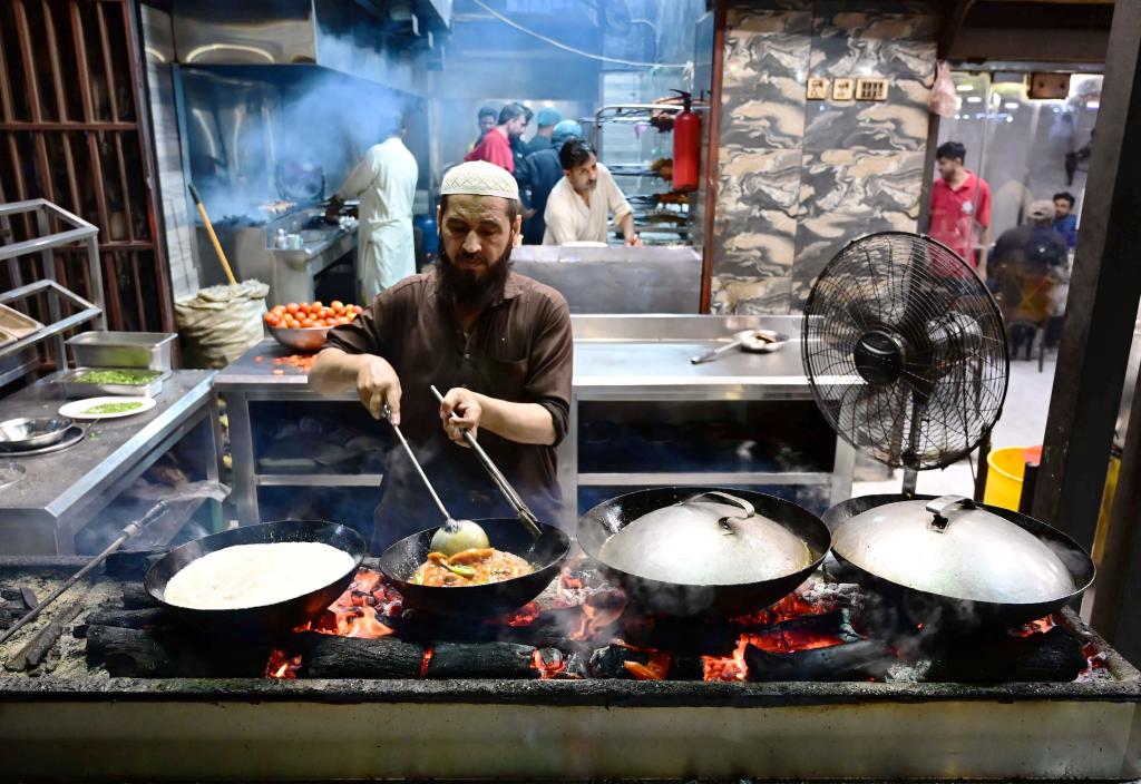 2025年3月17日,人们在巴基斯坦南部城市卡拉奇享用传统美食。新华社发