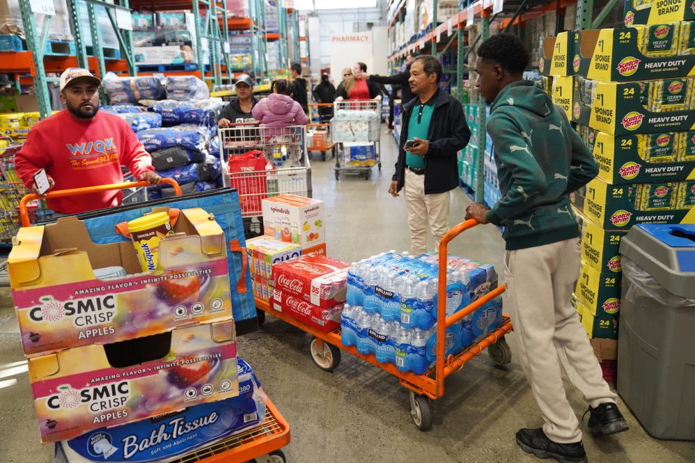 4月10日,市民在美国纽约一家超市购买生活用品。新华社记者 张凤国 摄