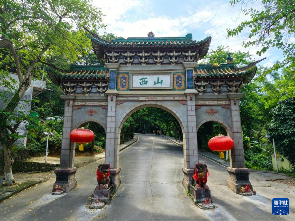 这是2026年3月12日拍摄的广西贵港桂平西山景区入口牌坊。 新华社发(黄秋铭 摄)
