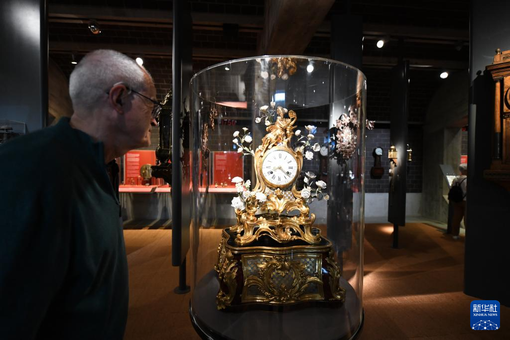 4月12日,人们在瑞士拉绍德封的国际钟表博物馆内观看展品。