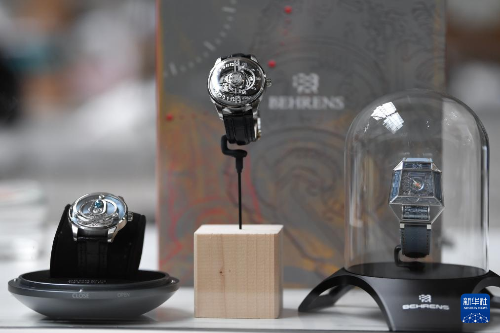这是4月12日在瑞士拉绍德封的国际钟表博物馆内拍摄的中国品牌贝伦斯制作的腕表。