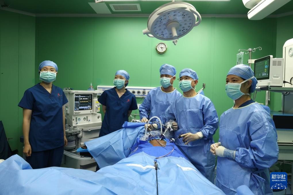 4月13日,执行“和谐使命-2025”任务的中国海军“丝路方舟”号医院船在巴布亚新几内亚开展医疗服务。这是医院船医护人员开展手术。新华社发(崔晓洋摄)