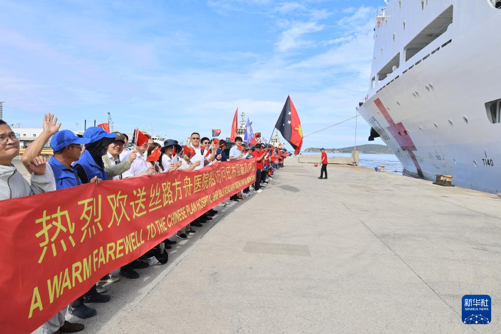 新华社莫尔兹比港4月15日电(崔晓洋 唐磊)中国海军“丝路方舟”号医院船15日结束对巴布亚新几内亚的友好访问与医疗服务,驶离莫尔兹比港起程回国。