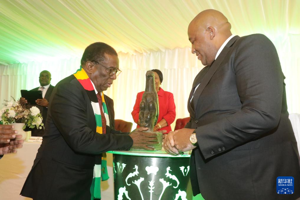 新华社哈拉雷4月15日电(记者叶挺)津巴布韦政府15日在首都哈拉雷总统府举行仪式,正式接收由南非归还的一件拥有数百年历史的“津巴布韦鸟”石雕及8具津巴布韦人祖先遗骸。