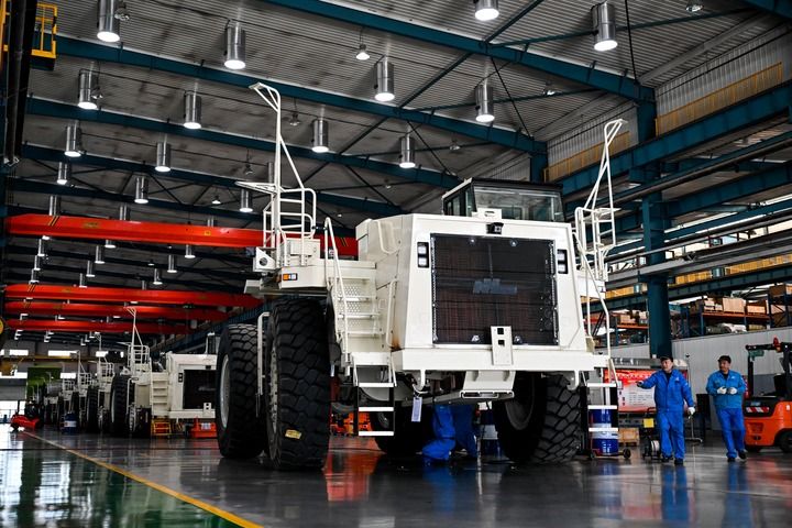 3月31日,工人在内蒙古北方重型汽车股份有限公司组装矿卡。 新华社记者 李志鹏 摄