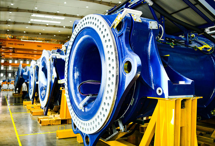 风电装备同样是绿色能源产业重要一极。在石拐区风电装备制造产业园一间车间里,即将下线的巨型齿轮箱近乎一层楼高。