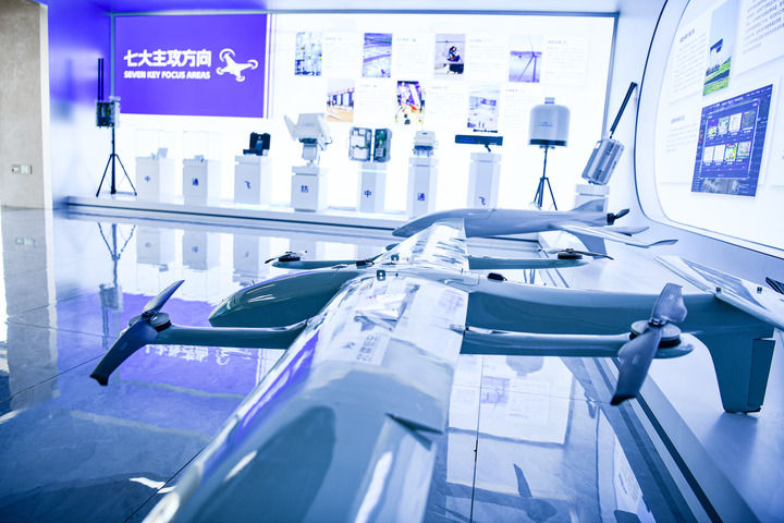 这是3月31日在包头市石拐区低空经济示范智港拍摄的低空经济示范展厅。新华社发(康文魁 摄)