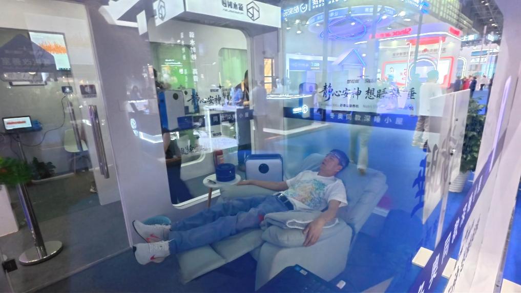 第六届中国国际消费品博览会1号馆内,一间梦陀螺“深睡小屋”人气高涨,成为现场备受关注的健康消费体验项目。
