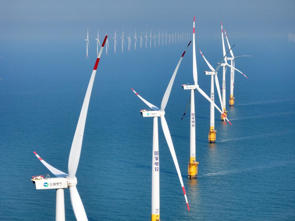 这是在南通市如东县拍摄的国电投南通新能源有限公司海上风电场(无人机照片,2025年2月9日摄)。新华社发(许丛军摄)