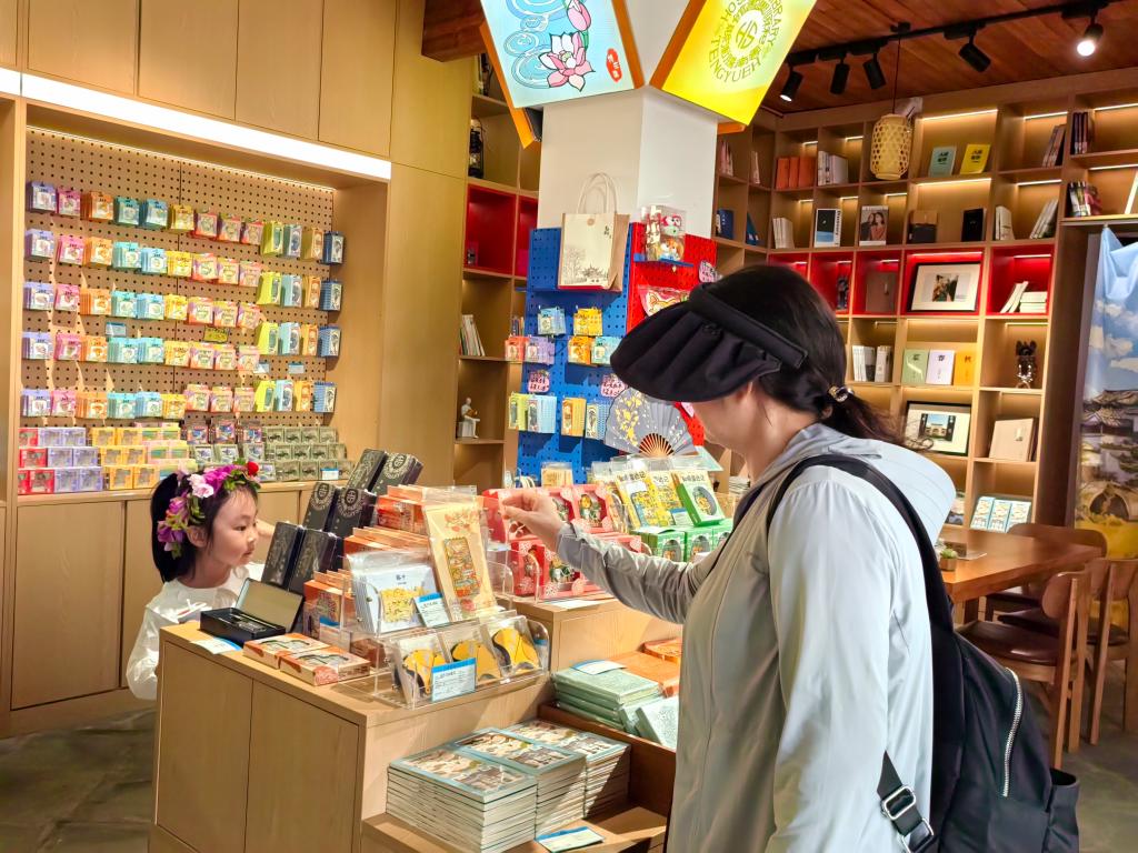 游客在和顺图书馆崇新书院选购文创产品。新华社记者 荆昭延 摄