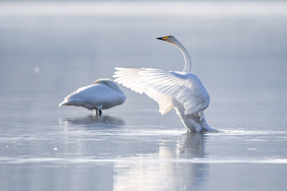 这是在青海省海东市化隆回族自治县境内的黄河边拍摄的天鹅。新华社记者齐芷玥摄