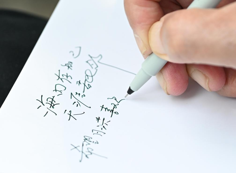 ↑4月19日,林宝山在摆摊卖书时和读者交流。