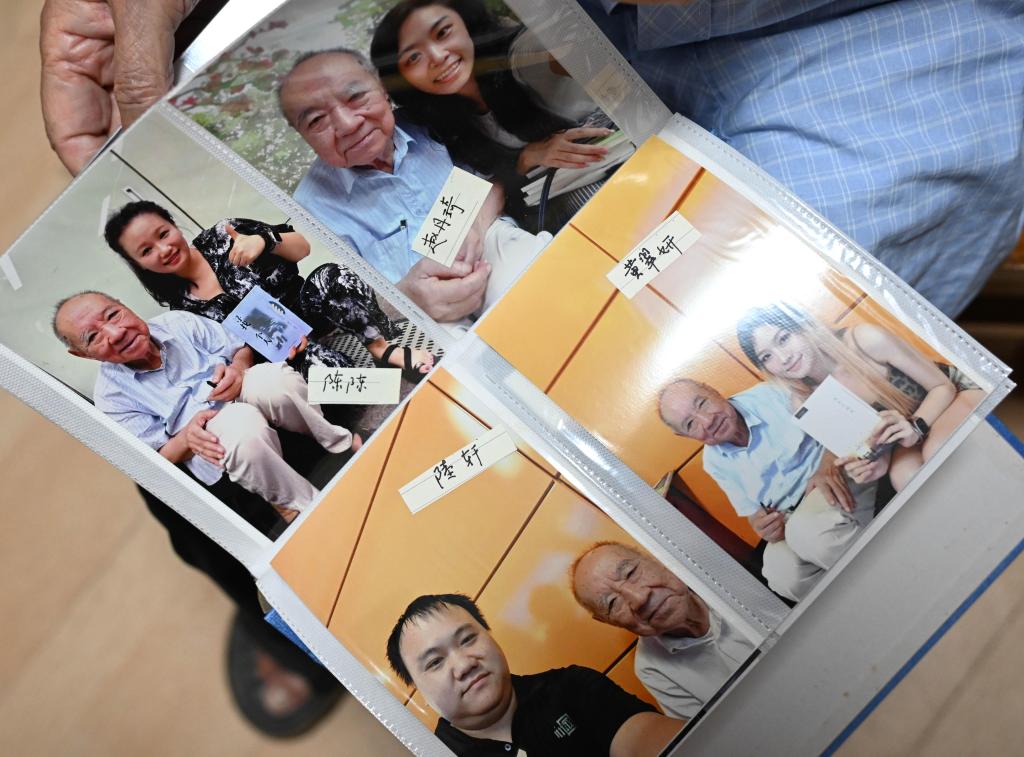↑4月19日,林宝山在家中展示他的书《寻找一个人》。